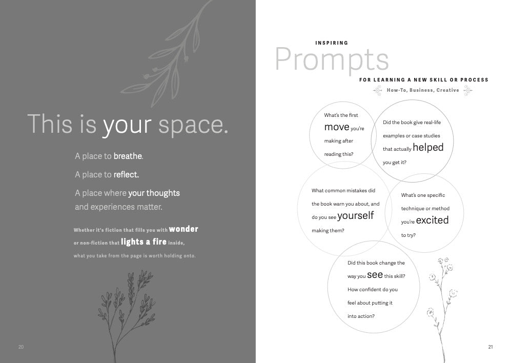 Whether savoring fiction for joy or exploring personal growth books, this journal helps you capture what resonates and linger in the lessons that stay with you long after the book is finished.